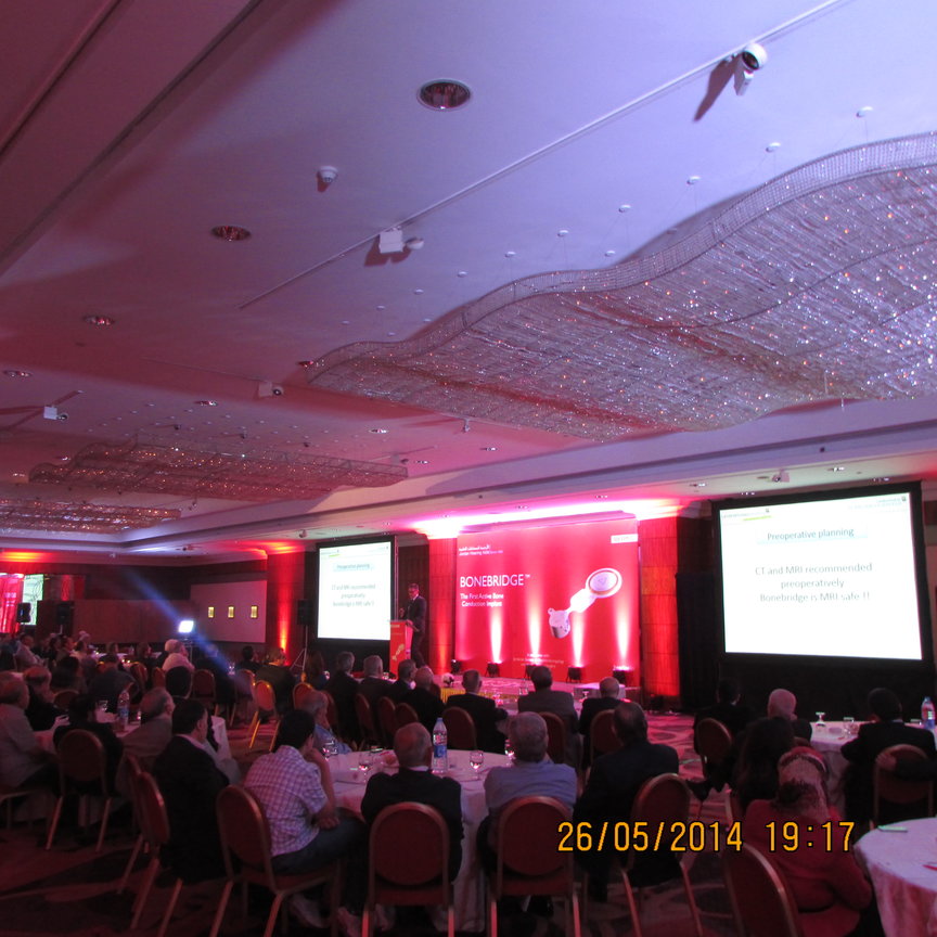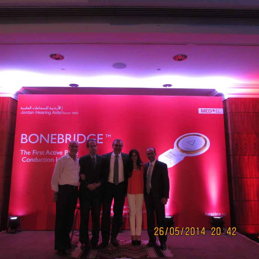 Jordan Hearing Aids – agent of Austrian company MED-EL – hosted Prof. George Sprinzl, Head of the Otorhinolaryngology and Neck Surgery Department at St. Pölten Hospital in Austria, during a dinner banquet that was recently held at the InterContinental Amman. Organized in collaboration with the Jordanian Society of Otorhinolaryngology and Head and Neck Surgery, the event also featured a group of otorhinolaryngologists from across the Kingdom to discuss the scientific paper presented by Prof. Sprinzl on the latest advancements in the implantation of the hearing implant, Bonebridge.